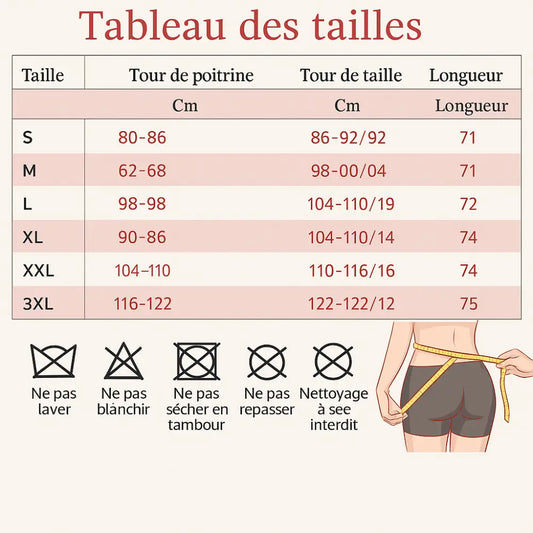 Il est important de comprendre que nos gaines ne constituent pas une solution de perte de poids permanente et ne remplacent pas une alimentation équilibrée ou l'exercice physique. Elles représentent un complément esthétique temporaire qui vous permet de vous sentir au mieux de votre forme.